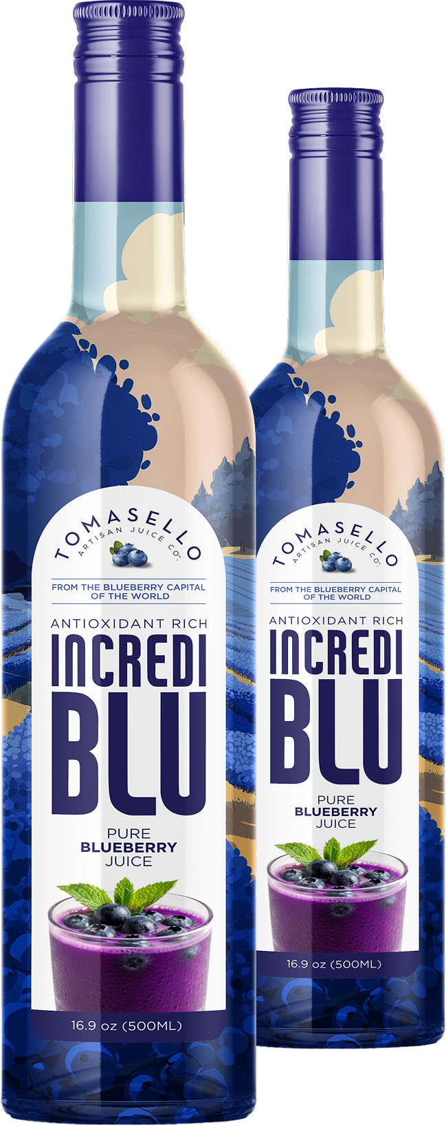 A bold, vibrant celebration of blueberries in their purest form. Made with nothing but real, antioxidant-rich blueberry juice, every sip delivers naturally sweet flavor and rich, stunning color. from the blueberry capital of the world to your glass, incrediblu is refreshingly simple, beautifully pure, and unmistakably delicious.